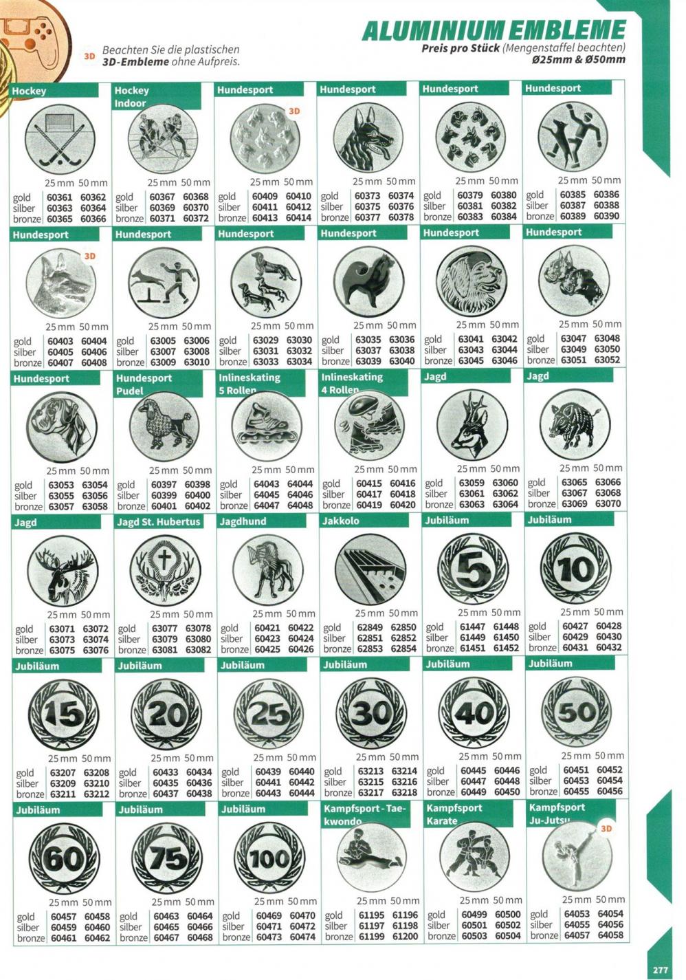 1 Motiv in der Farbe gold je Sportart verfügbar,