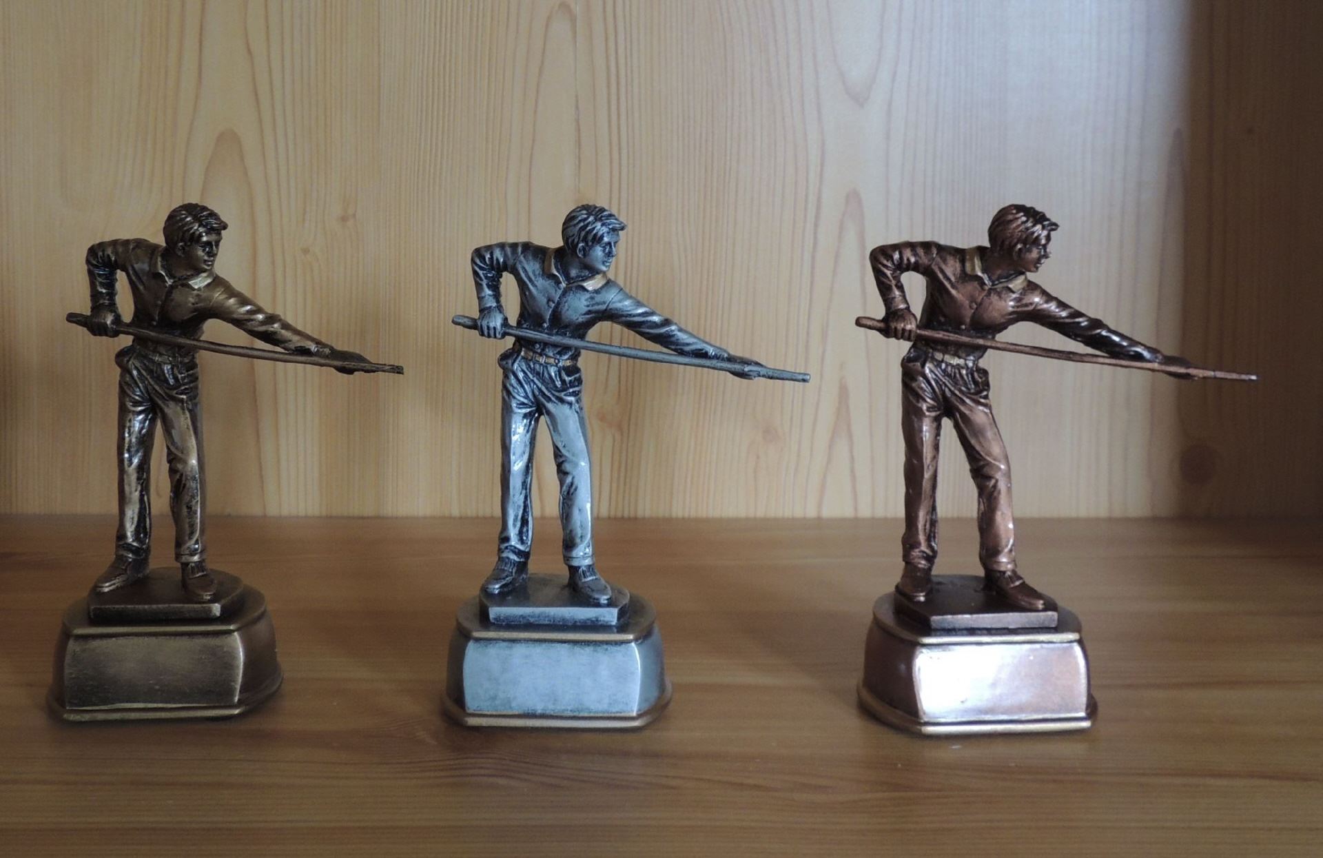 BillardHerrenPreis für die komplette3er Serieoder Einzeln Preis je StückFiguren ResinFarbe: gold, silber, bronze Höhe ca. 14,5 cm Gravurfläche 40x18mm