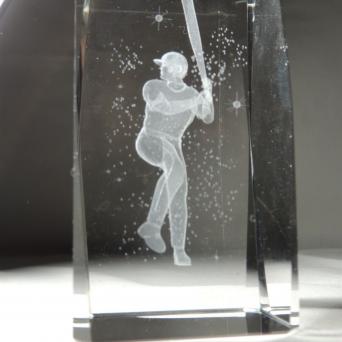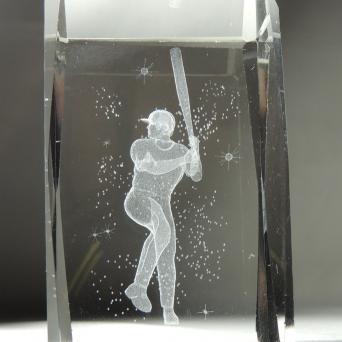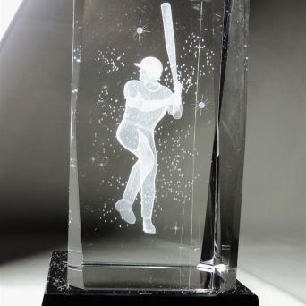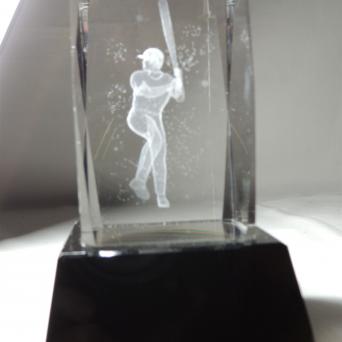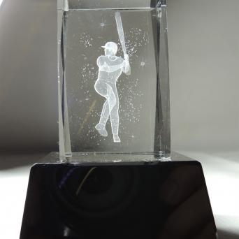 1 Baseball Glasblock mit Glas Sockel schwarz