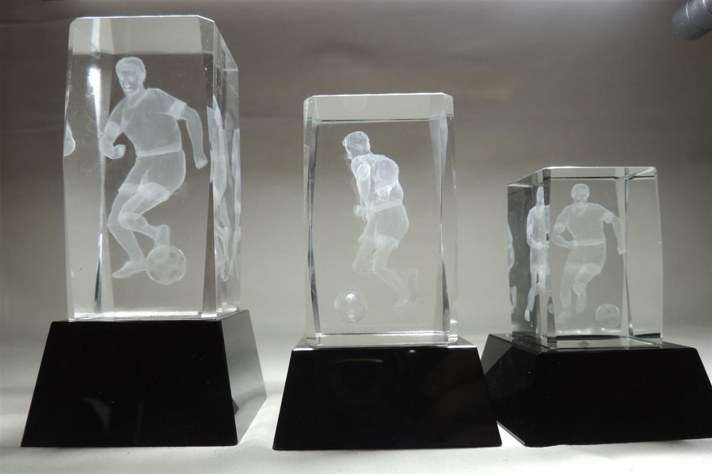 massiver Glasblock mit dreidimensionaler Lasergravur