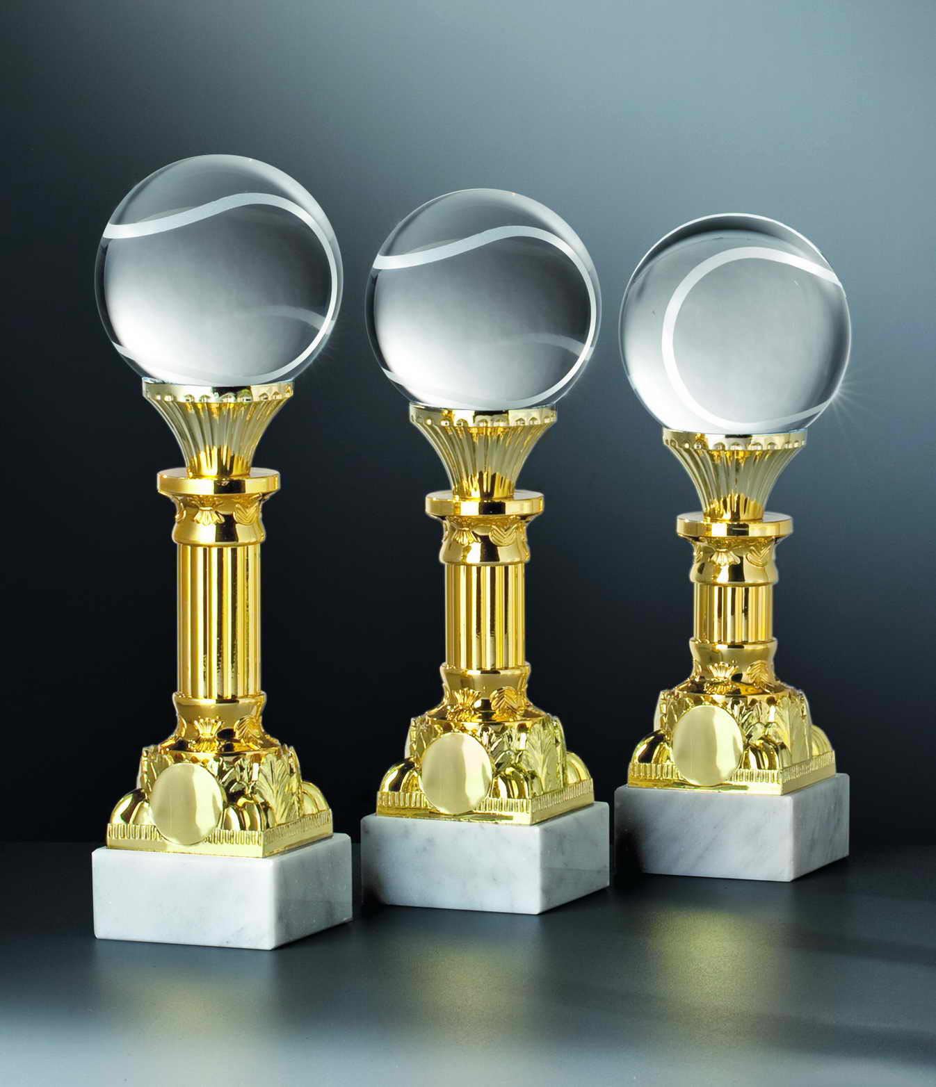 Tennis Glas Ball Säule gold 3er Serie #304 mit Gravur