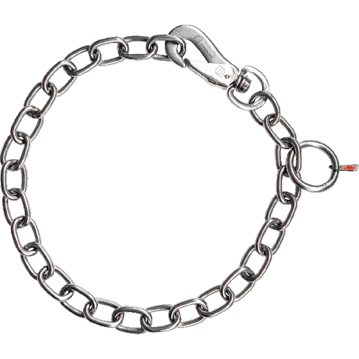 Highlights Qualität Edelstahl rostfrei Ausführung ohne Zug Kettentyp medium Drahtstärke 4,00 mm optimierter Tragekomfort durch Neupositionierung des Rings fellschonend mit SPRENGER-Haken 60250
