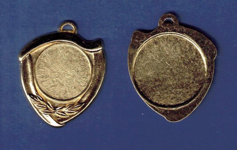 1 Medaille 46x40mm Farbe gold #M 30 mit Band + Emblem