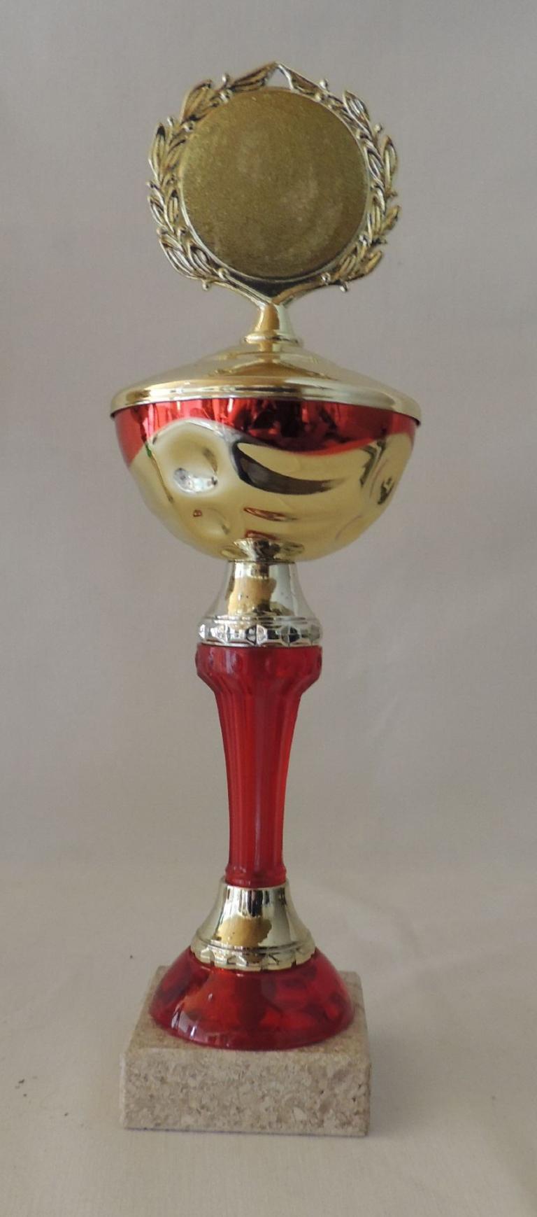 PokalFarbe : gold-rotAusstellungsstückPreis je StückDurchmesser 8 cmHöhe ca. 27 cmMarmor 65 x 20 mm