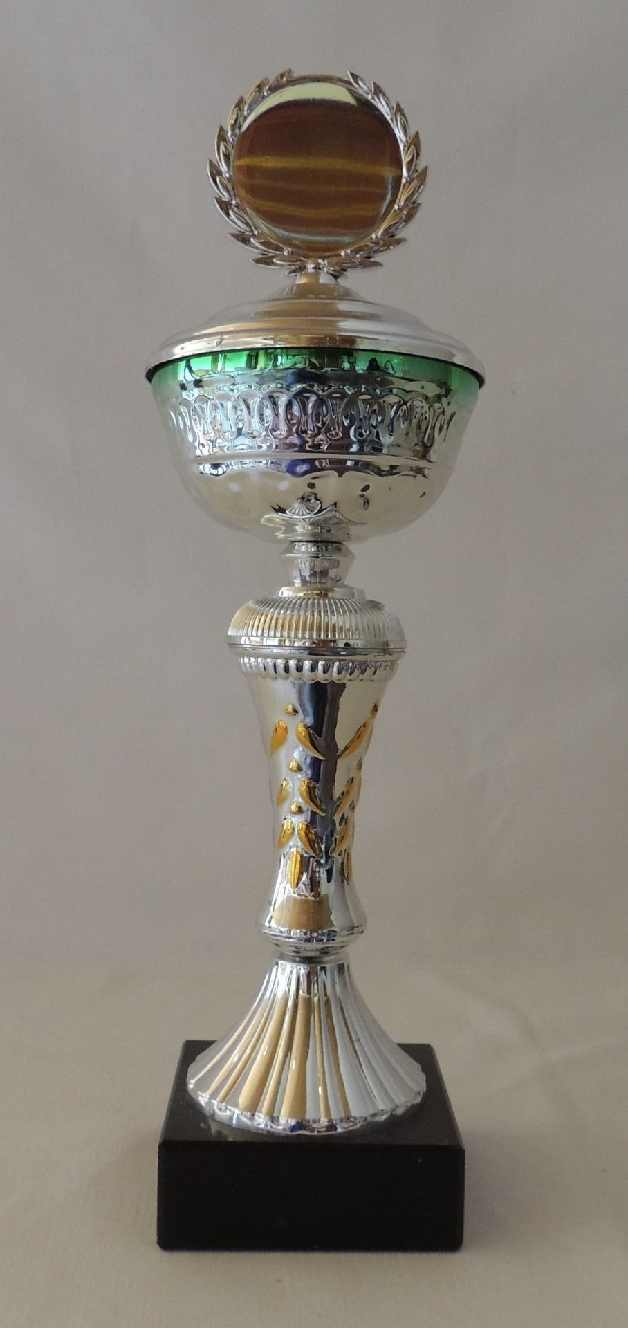 1 Pokal silber-grün Ø 10cm H. 34 cm #22181 mit Gravur