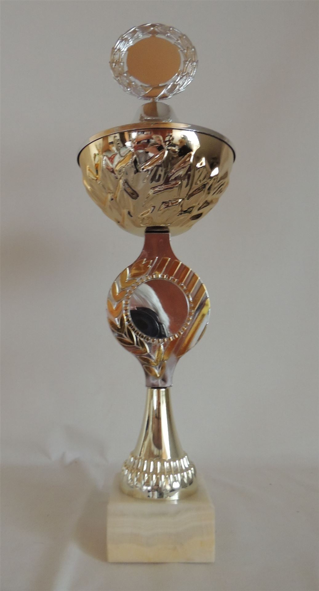 Höhe 46,5 cmDurchmesser 14 cmPreis je StückSockel Marmor80x40mmKelch, Deckel und Deckelaufsatz aus Metall