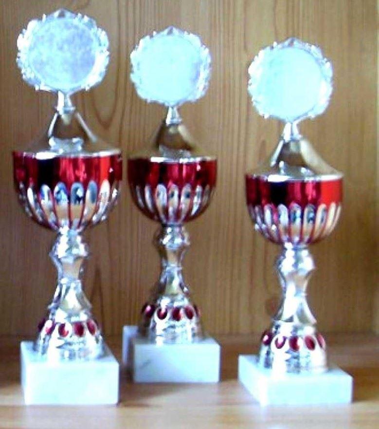 Pokale silber-rot 3er Serie 34/31/28cm #1050