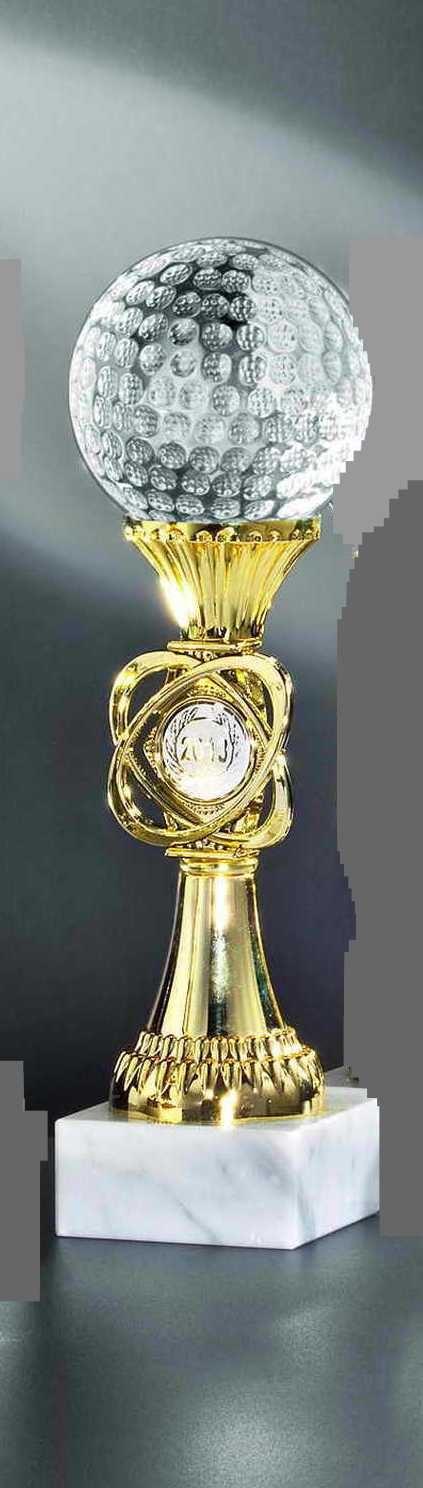 1 Pokal gold Golfball aus Glas auf Marmor #144 mit Gravur